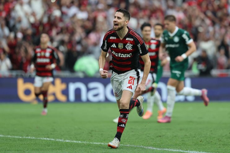 10 de 10Jorginho comemora gol de pênalti contra o Palmeiras • Wagner Meier/Getty Images